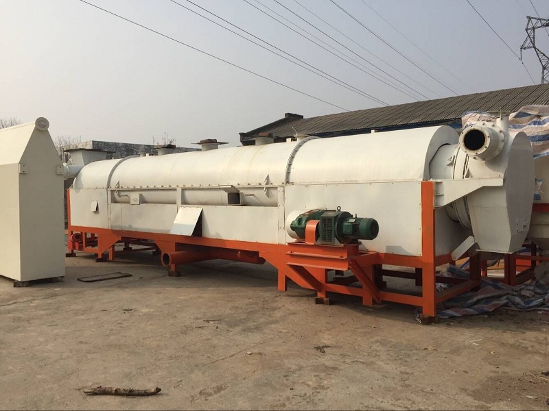 3.炭化主機(jī)達(dá)到設(shè)定溫度后開始上料,首先進(jìn)入預(yù)熱區(qū)把原料剩余水分烘干,之后進(jìn)入炭化區(qū)炭化,炭化溫度控制在600℃左右,炭化過程中所產(chǎn)生的煙氣返回凈化系統(tǒng),凈化之后轉(zhuǎn)化為可燃?xì)庋h(huán)燃燒,這樣利用自體產(chǎn)生的煙氣燃燒自體,滿足炭化機(jī)炭化時(shí)所需熱能連續(xù)生產(chǎn),達(dá)到環(huán)保節(jié)能的效果;
